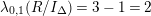 $\unicode[STIX]{x1D706}_{0,1}(R/I_{\unicode[STIX]{x1D6E5}})=3-1=2$