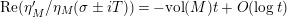 $$\begin{eqnarray}\displaystyle N_{\text{w}}(T;Z_{M}^{\prime }) & = & \displaystyle \frac{T}{2\unicode[STIX]{x1D70B}}\log T+\frac{T}{2\unicode[STIX]{x1D70B}}\left(\frac{1}{2}\ell _{M,0}+\log \left(\frac{\text{vol}(M)(1-e^{-\ell _{M,0}})}{m_{M,0}\ell _{M,0}}\right)-1\right)\nonumber\\ \displaystyle & & \displaystyle +\,o(T)\quad \text{as }T\rightarrow \infty .\end{eqnarray}$$