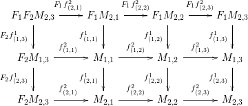 $$\begin{eqnarray}A=\left[\begin{array}{@{}ccc@{}}{\mathcal{O}} & {\mathcal{O}}(-L_{1}) & {\mathcal{O}}(-L_{1})\\ {\mathcal{O}} & {\mathcal{O}} & {\mathcal{O}}(-L_{1})\\ {\mathcal{O}} & {\mathcal{O}} & {\mathcal{O}}\end{array}\right]\otimes \left[\begin{array}{@{}ccc@{}}{\mathcal{O}} & {\mathcal{O}}(-L_{2}) & {\mathcal{O}}(-L_{2})\\ {\mathcal{O}} & {\mathcal{O}} & {\mathcal{O}}(-L_{2})\\ {\mathcal{O}} & {\mathcal{O}} & {\mathcal{O}}\end{array}\right]=A_{1}\otimes A_{2}.\end{eqnarray}$$