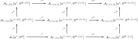 ∙ Commutativity relations:  $X_{I_{\mathbf{a}}}^{i}X_{I_{\mathbf{a}}}^{j}=X_{I_{\mathbf{a}}}^{j}X_{I_{\mathbf{a}}}^{i},\;X_{I_{\mathbf{a}}}^{i}y_{j}=y_{j}X_{I_{\mathbf{a}+\mathbf{e}_{j}}}^{i},\;y_{i}y_{j}=y_{j}y_{i}$
