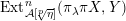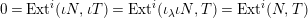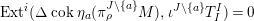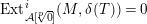$$\begin{eqnarray}\displaystyle & & \displaystyle \operatorname{Ext}_{L_{i}}^{1}(T_{\emptyset }\otimes {\mathcal{O}}_{L_{i}},T_{\{i\}})\nonumber\\ \displaystyle & & \displaystyle \quad =\left\{\begin{array}{@{}l@{}}\operatorname{Ext}_{L_{i}}^{1} (\!{\mathcal{O}}_{L_{i}}\oplus {\mathcal{O}}_{L_{i}}(1)\oplus {\mathcal{O}}_{L_{i}}(a_{i}+m)\oplus {\mathcal{O}}_{L_{i}}(a_{i}+m+1),\\ \qquad {\mathcal{O}}_{L_{i}}(a_{i}+m)\oplus {\mathcal{O}}_{L_{i}}(a_{i}+m+1)\!)=0,\quad i=0,\ldots ,l,\\ \operatorname{Ext}_{L_{i}}^{1}({\mathcal{O}}\oplus {\mathcal{O}}_{L_{i}}\oplus {\mathcal{O}}_{L_{i}}(1)\oplus {\mathcal{O}}_{L_{i}}(1),{\mathcal{O}}_{L_{i}}\oplus {\mathcal{O}}_{L_{i}}(1))=0,\\ \qquad i=l+1,\ldots ,n,\end{array}\right.\nonumber\end{eqnarray}$$