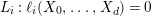$L_{i}:\ell _{i}(X_{0},\ldots ,X_{d})=0$