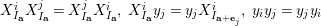 whenever these compositions make sense. $X_{I_{\mathbf{a}}}^{i}X_{I_{\mathbf{a}}}^{j}=X_{I_{\mathbf{a}}}^{j}X_{I_{\mathbf{a}}}^{i},\;X_{I_{\mathbf{a}}}^{i}y_{j}=y_{j}X_{I_{\mathbf{a}+\mathbf{e}_{j}}}^{i},\;y_{i}y_{j}=y_{j}y_{i}$