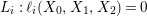 $L_{i}:\ell _{i}(X_{0},X_{1},X_{2})=0$