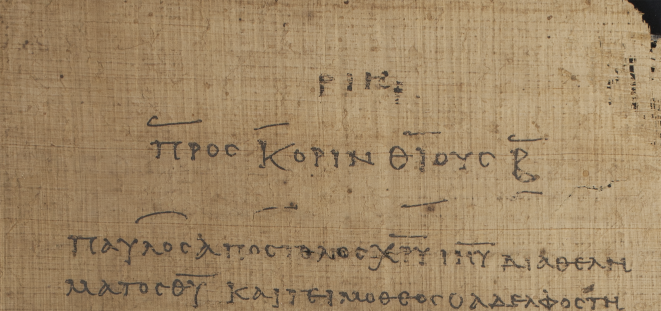 προς κορινθιους α̅ (Fig. 1). The aesthetics and layout of this inscription to 1 Corinthians are identical to the Hebrews inscription: it is centred, distinguished by horizontal lines and a paragraphos, and a stichos notation for Hebrews is present, added by the same second hand.