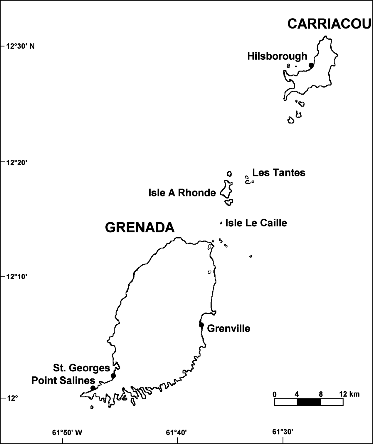 Fig. 1 A map of the islands of Grenada and Carriacou, showing the capital St. George’s and Grenville market.
