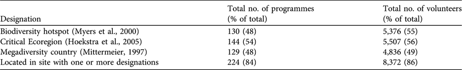 Table 4 Number of in situ volunteering projects and volunteers in global conservation priority zones.