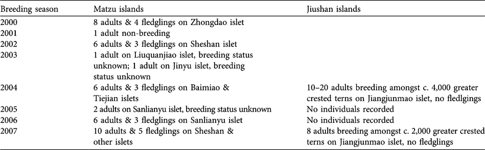 Table 1 Numbers of Chinese crested terns recorded in the two known populations.