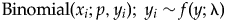 ${\rm Binomial}( {x_i;p,y_i} ) ;{\rm \; }y_i\sim f( {y;{\rm \lambda }} ) $