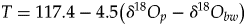 $$T = 117.4-4.5( {\delta {}_{}^{18} O_p-\delta {}_{}^{18} O_{aw}} ) $$(2)when transposed to the case of aquatic or semiaquatic vertebrates.