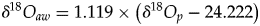 $$\delta {}_{}^{18} O_{aw} = 1.119 \times \left( {\delta {}_{}^{18} O_p-24.222} \right)$$(5)