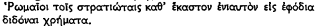 75 Wilcken, Gr. Ostraka, 1128–46; receipts for corn etc. given ἅχρι τοῦ ὀψωνίου (1129), ἅχρι λόγου συνάρσεως (1135), ἐν προχρ[εία], cf. 1131, 1145. Van Berchem, , L'Annone militaire dans l'Empire romain au troisième siècle (Paris 1937) p. 136Google Scholar, cites these for his view that the stipendium was supplemented by payments in kind as early as Severus; they seem to me to make against it. It is also quite uncertain whether there is any reference to the military annona in Dio, lxxviii. 34, 3, describing Macrinus' restoration of Caracalla's concessions to the Army: ![]()