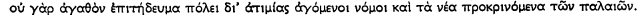 . He approves Zaleucus' law that any one proposing a legislative change should do so with a rope around his neck. Further,![]()