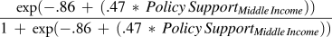 To test this possibility, we need an estimate of the probability of policy adoption if the rich received no representation and those in the middle received the same representation as the rich are thought to receive. To estimate this counterfactual scenario, I build on Gilens' analysis. Footnote 32 For each of the 1,836 survey questions in the data, Gilens determines whether the proposed policy or policy change was adopted within the subsequent four years. Thus, it is possible to identify the relationship between policy support and whether the policy (or policy change) was adopted. Gilens estimates the relationship between the preferences of the ninetieth income percentile and the probability of policy adoption to be 0.47 with a standard error of 0.18. Footnote 33 For the current analysis, we want to know what would be the expected probability of policy adoption if the wealthy received no representation and the relationship between the preferences of those in the middle and the probability of policy adoption equalled 0.47 (i.e., the estimated representation received by the wealthy). Since we know the proportion of middle-income respondents who support each policy, we can easily estimate the predicted probability of policy adoption under this counterfactual scenario. Footnote 34