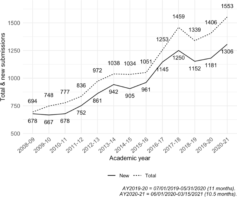Figure 1 Total and New Submissions, 2008–2020 Academic Years