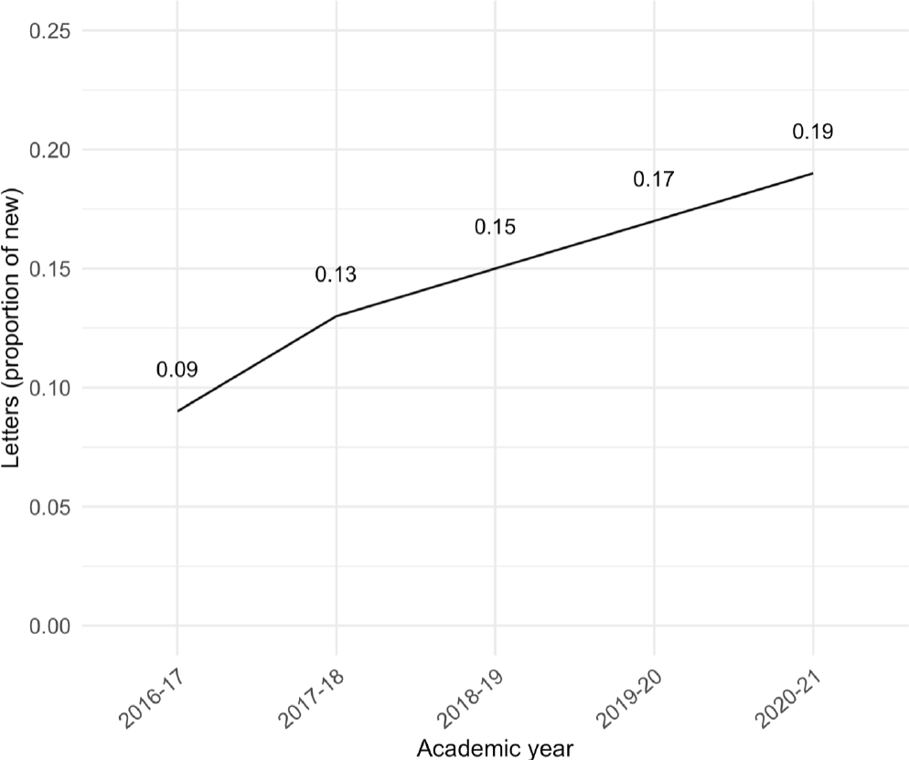 Figure 3 Letters as Proportion of New Submissions by Academic Year, 2016–2021