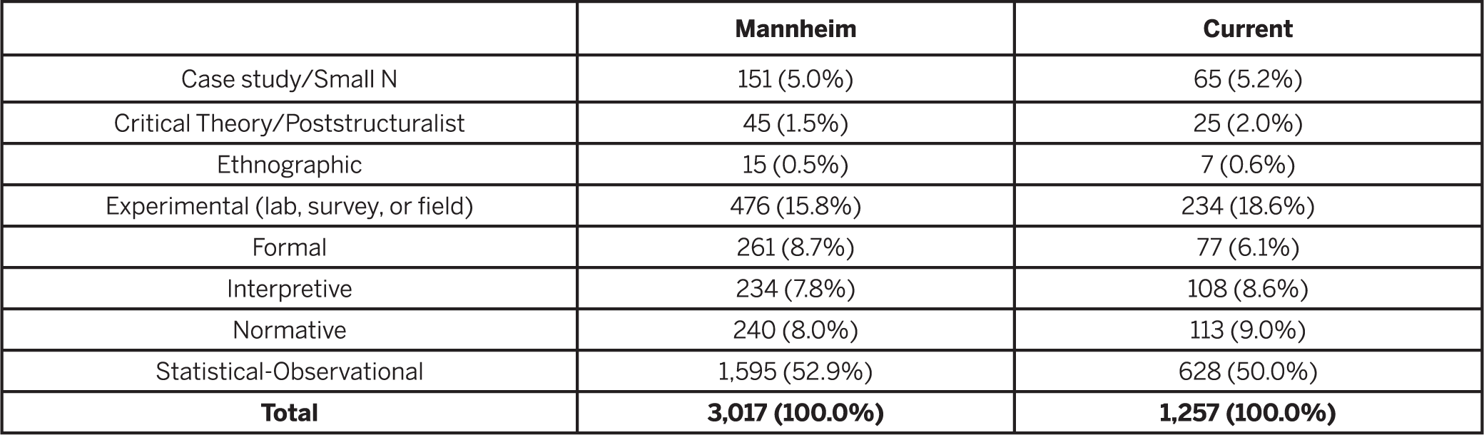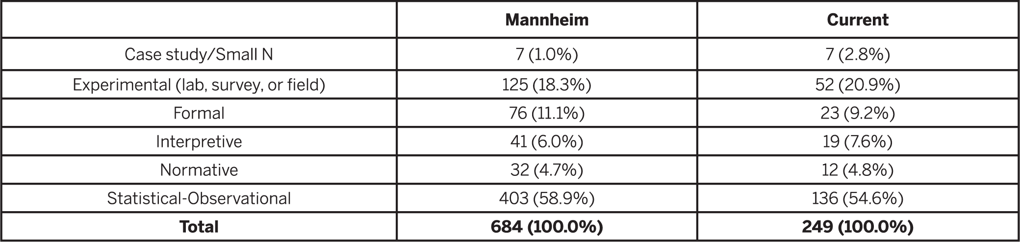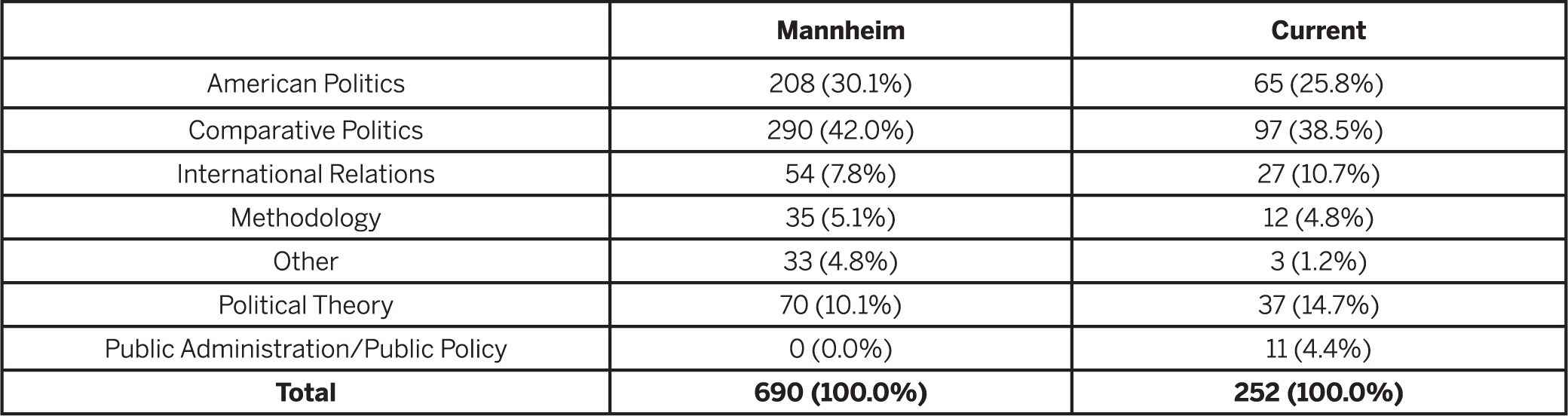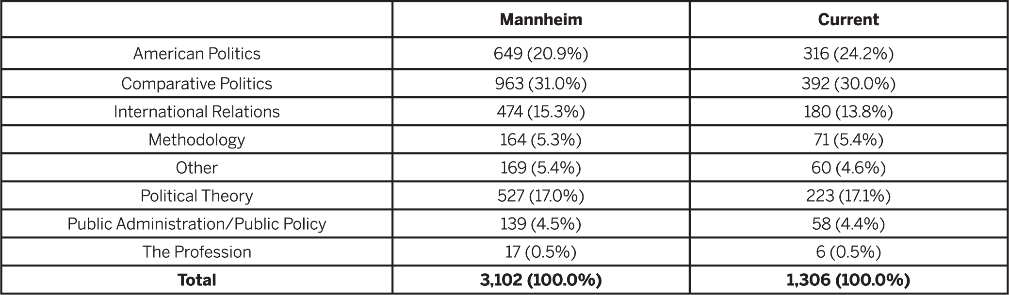 Note: These categorizations are chosen by the corresponding author using submission questionnaire approved by APSA Council, January 2018. N/As are omitted.
