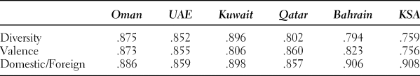 Diversity, Valence, and Domestic/Foreign Origin across the GCC States