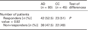 Table 5 Comparison of responders with non-responders between groups where 7 or greater is defined as response