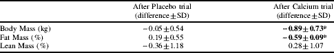 Epidemiological data suggest a positive relationship between increased Ca intake and decreased fat and total body mass in healthy individuals(Reference Davies, Heaney, Recker, Lappe, Barger-Lux, Rafferty and Hinders1, Reference Parikh and Yanovski2). An in vitro model suggesting the role of cAMP and phosphodiesterase 3B has been implicated in the relationship between Ca and lipolysis(Reference Xue, Greenberg, Kraemer and Zemel3, Reference Zemel, Shi, Greer, DiRienzo and Zemel4). The objective of the current research was to investigate the effect of Ca supplementation on fat metabolism during moderate-intensity submaximal exercise.