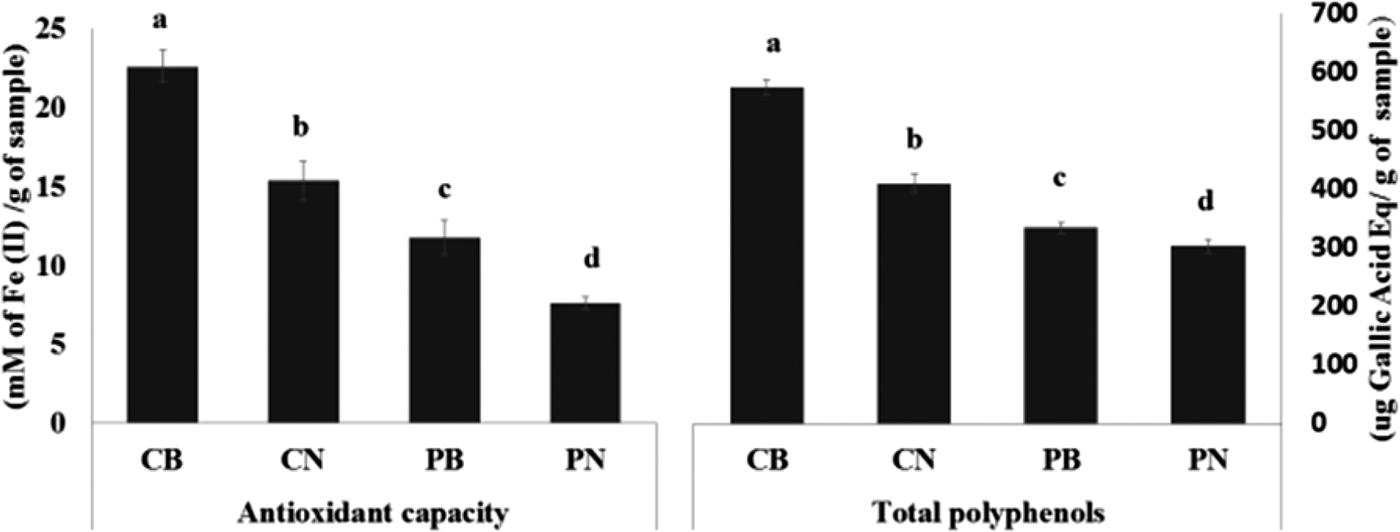 Fig. 1. Antioxidant capacity and polyphenol contents of the cakes.