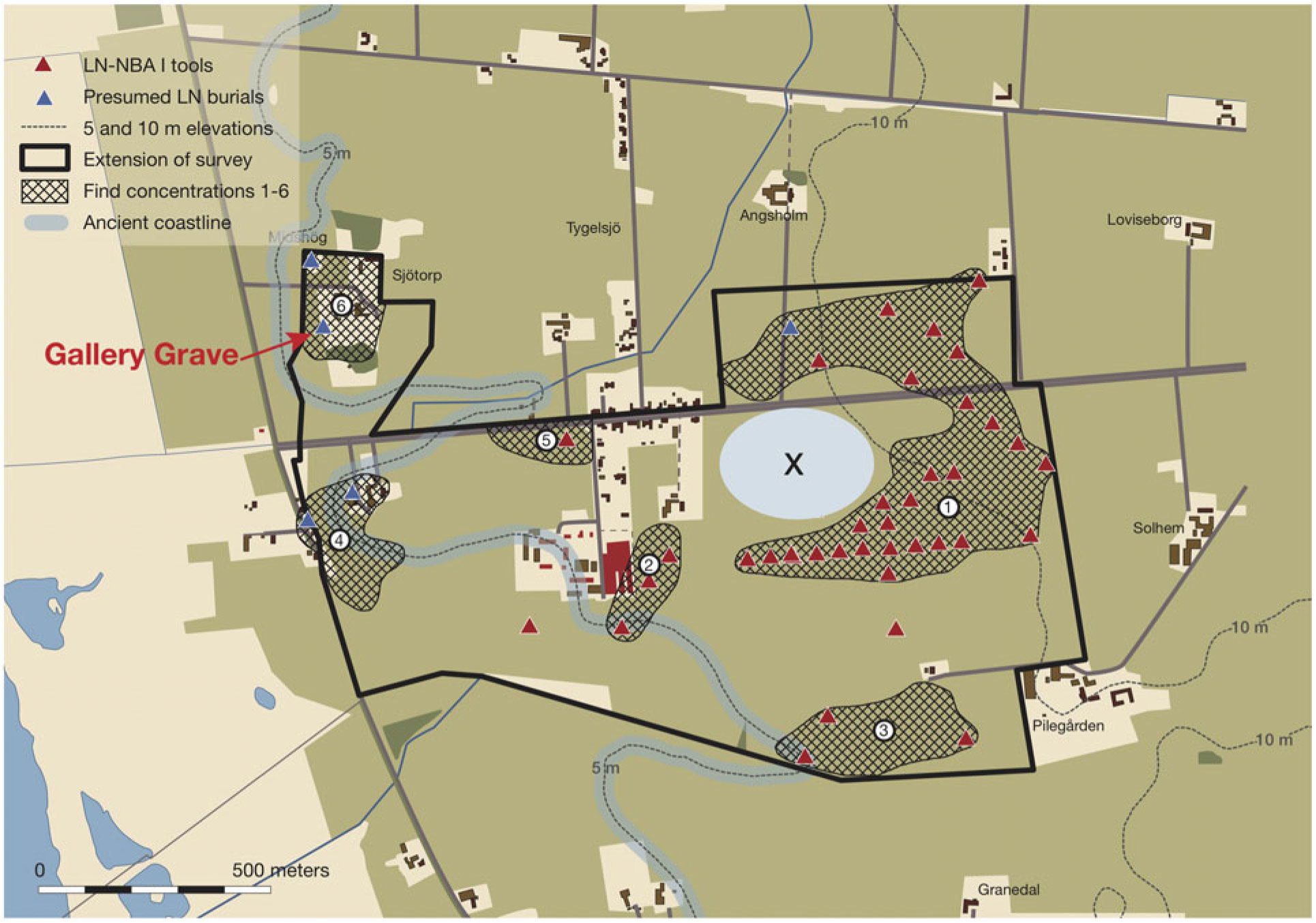 Fig. 4. The location of Pile in south-west Scania, c. 200 m from the ancient coastline of the Öresund Strait, leading to the Danish isles, or farther southward or westward (after Vandkilde Reference Vandkilde2017a, 23, fig. 6; graphics by Unit of Archaeological IT AU Moesgaard)