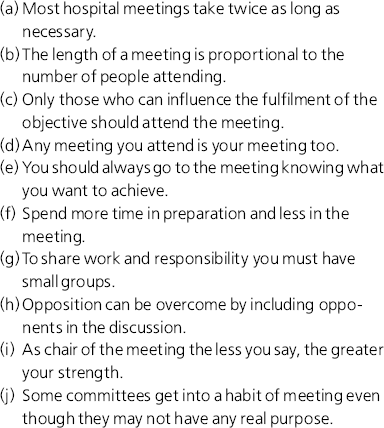 Much of psychiatry involves managing meetings: care planning meetings, ward round meetings and, of course, meetings with patients. A meeting is, to a psychiatrist, what an operating list is to a surgeon. Many doctors are never taught how to manage a meeting. It is a skill that can be learnt. Tony White teaches the skill in the final two chapters of his book, Management for Clinicians (Reference WhiteWhite, 1993). Some important points from these chapters are summarised in Box 1.
