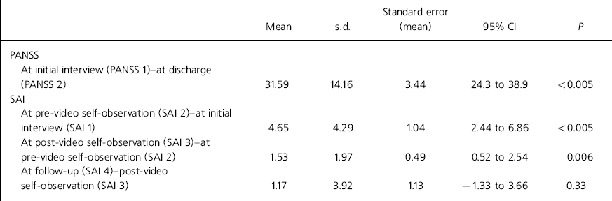 After video self-observation (SAI 3) there was a further statistically significant (P<0.006) improvement in the insight score, a mean increase of 1.5 points (95% CI 0.5-2.5).