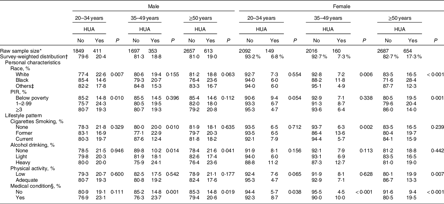 HUA, hyperuricaemia; PIR, poverty income ratio.