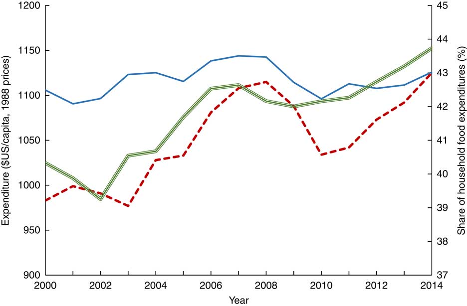 ),2000–2014 (source: US Department of Agriculture, Economic Research Service, Food Expenditures, tables 10 and 13(