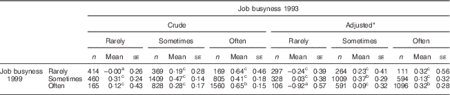 Table 2 Crude and adjusted mean weight change in kilograms from 1999 to 2009 associated with job busyness from 1993 to 1999 (data from the Danish Nurse Cohort, 1993, 1999 and 2009)