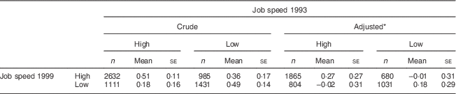 Weight gain did not depend on whether job speed was increased, decreased or sustained in either crude (P=0·35) or fully adjusted analyses (P=0·50; Table 3).