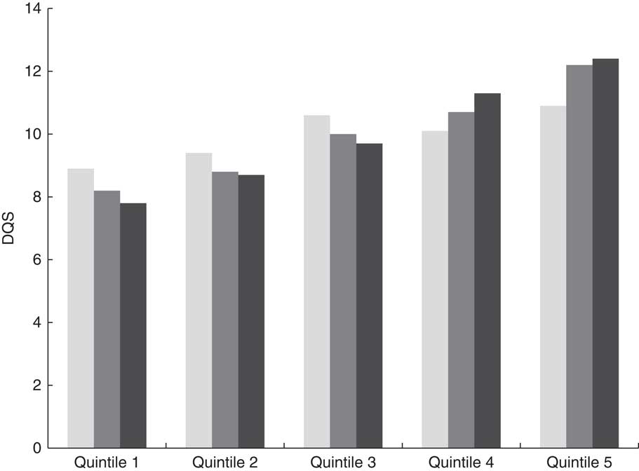 Fig. 1 Mean dietary quality score (DQS) out of 21 for each quintile of the three nutrients, vitamin C (