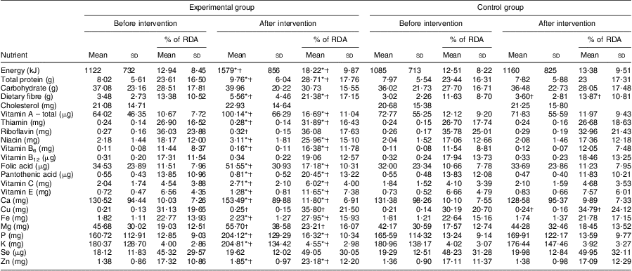 Mean values were significantly different from those before the intervention (paired-samples t test): †P < 0·05.