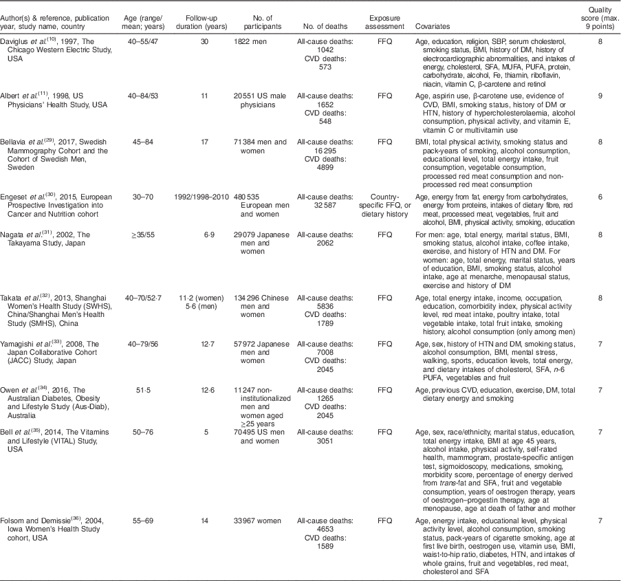Table 1 General characteristics of studies included in the present meta-analysis on fish consumption and risk of all-cause and cardiovascular mortality
