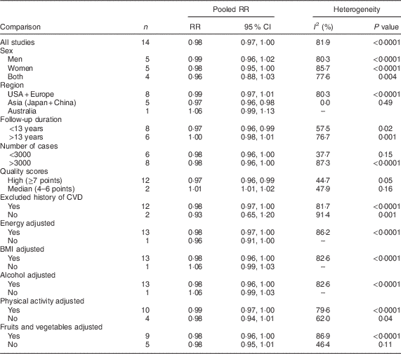 Table 2 Relative risk (RR) of all-cause mortality for a 20 g/d increment in fish consumption: subgroup analyses