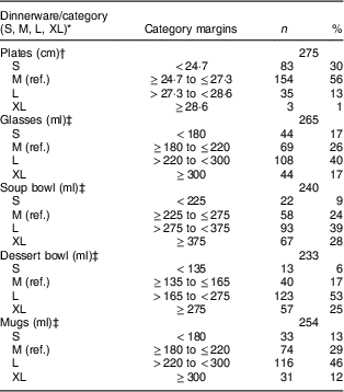 * Dinnerware categories: S, small; M (ref.), medium and reference category; L, large; XL, extra large.