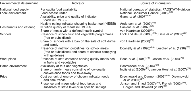 Table 1 Summary table of potential environmental determinants of diet and suggested indicators