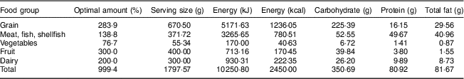 Table 3 Results on optimal nutrition levels for Korean males aged 30–49 years from the dine-out menu optimization