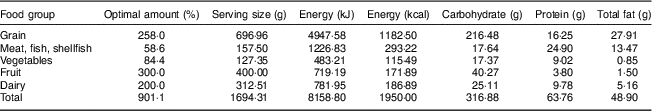 Table 6 Results on optimal nutrition levels for Korean females aged 30–49 years from the dine-out menu optimization