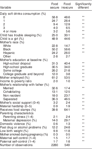 Table 1 Descriptive statistics of children in the sample by food security status, Fragile Families and Child Wellbeing Study (n 2829)