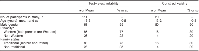 Table 1 Characteristics of adolescents participating in the test–retest reliability and construct validity studies; DOiT (Dutch Obesity Intervention in Teenagers) questionnaire assessing energy balance-related behaviours. Data are presented as n and % except where indicated