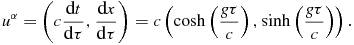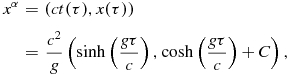 & =& \frac{c^2}{g} \left( \sinh \left(\frac{g \tau }{c}\right) , \cosh \left(\frac{g \tau }{c} \right) + C \right),