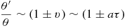 The view from each spaceship is starkly different. The trailing spaceship sees the leading steadily decreases in angular size, getting smaller and smaller as the two spaceships accelerate. However, the leading spaceship initially sees the trailing spaceship grow in size; this, of course, is a well-known special relativistic result, where an observer at relativistic speeds sees objects, such as a distant star-field, apparently pile up in the direction of motion, a relativistic aberration effectFootnote 1 . This is reflected in the linear change in the apparent angular size of the spaceships once the acceleration starts. In the low velocity limit, we can approximate the velocity to be v ~ aτ and the apparent angular size given by special relativistic aberration relation is given by
