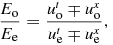 As with the view of the leading spaceship, when the trailing spaceship begins its acceleration, it is still receiving photons from the leading spaceship when it was at rest, so again u α e = (ue t , ux e ) = (1, 0), and, again, the trailing spaceship begins to receive photons from the leading spaceship once it begins its acceleration. In this circumstance, the ratio of the photon energies for the first stage of the accelerated path is given by