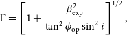 \begin{equation} \Gamma = \left[1 + \frac{ \beta^{2}_{\rm exp}}{\tan^{2}{\phi_{\rm op}} \sin^{2}{i}}\right]^{1/2},\end{equation}
