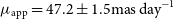 $\mu_{\rm app}=47.2\pm1.5 \mathrm{mas\,day}^{-1}$