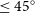 $\leq45^{\circ}$