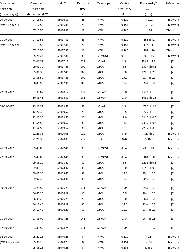 mJy at 1.34 GHz around 21 September 2017 (Chauhan et al. Reference Chauhan2019a; Russell et al. Reference Russell2019).