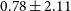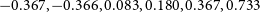$-0.367, -0.366, 0.083, 0.180, 0.367, 0.733$